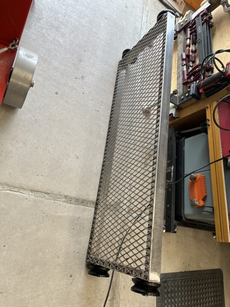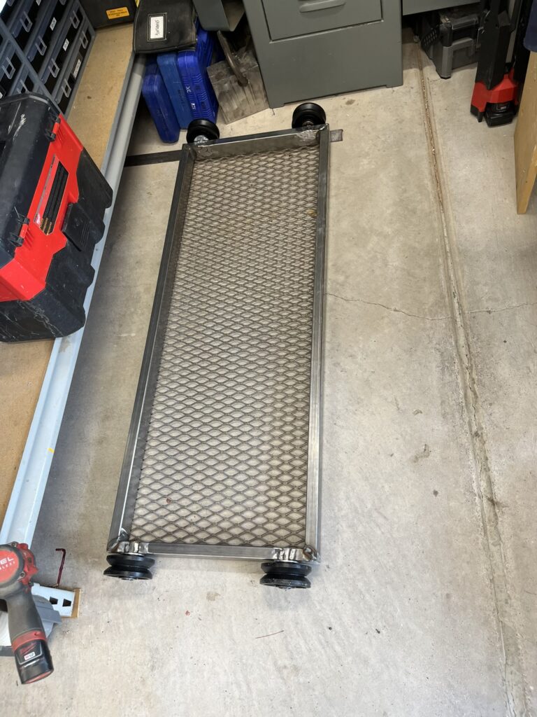 I tacked each corner, then rotated it around so I could get each weld in a flat position, and then cut and welded on a piece of expanded metal for the bottom. I like expanded metal for this since it doesn’t allow dirt and grit to accumulate inside.